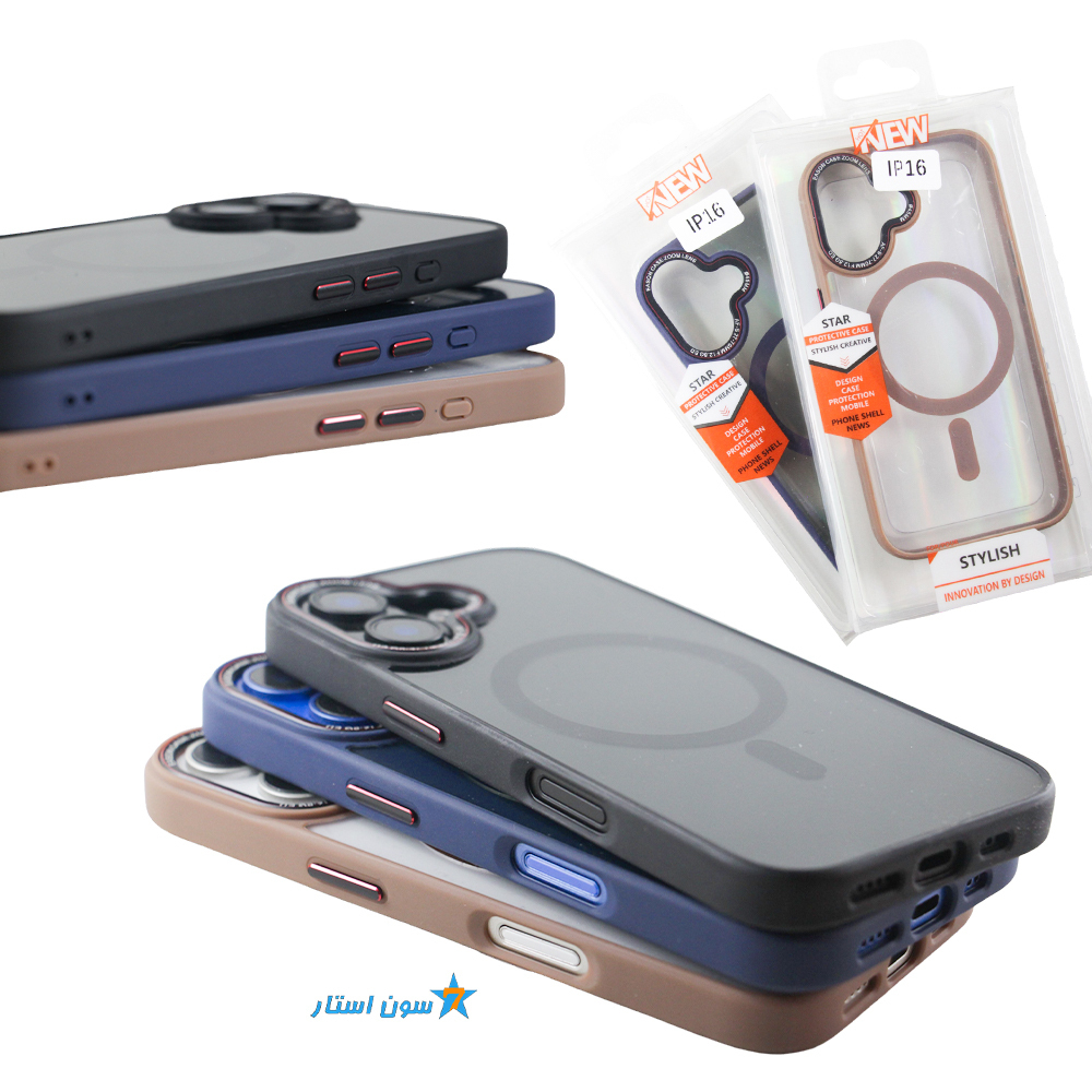 قاب طلقی مگسیف دار دور سیلیکونی آیفون 16 NEW STAR